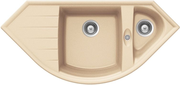 Отводная арматура c клапаном–автоматом 3 1/2'' и переливом для основной чаши, 3 1/2'' корзинчатый вентиль для дополнительной чаши, сифон с возможностью подключения посудомоечной или стиральной машины.