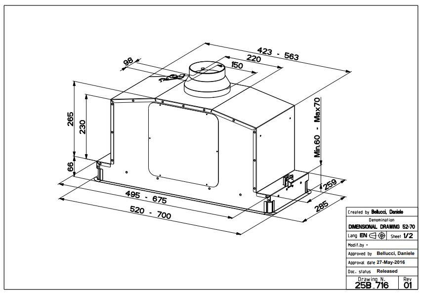 Встраиваемая вытяжка в минималистичном дизайне Faber IN-LIGHT EV8P X A70 идеально дополнит кухонный интерьер в стиле Hi-Tech. Модель поддерживает три рабочих скорости и снабжена таймером авто-отключения для устранения остаточных испарений по завершению готовки. Интенсивный режим позволяет справиться с посторонними запахами, дымом и копотью за максимально короткое время.