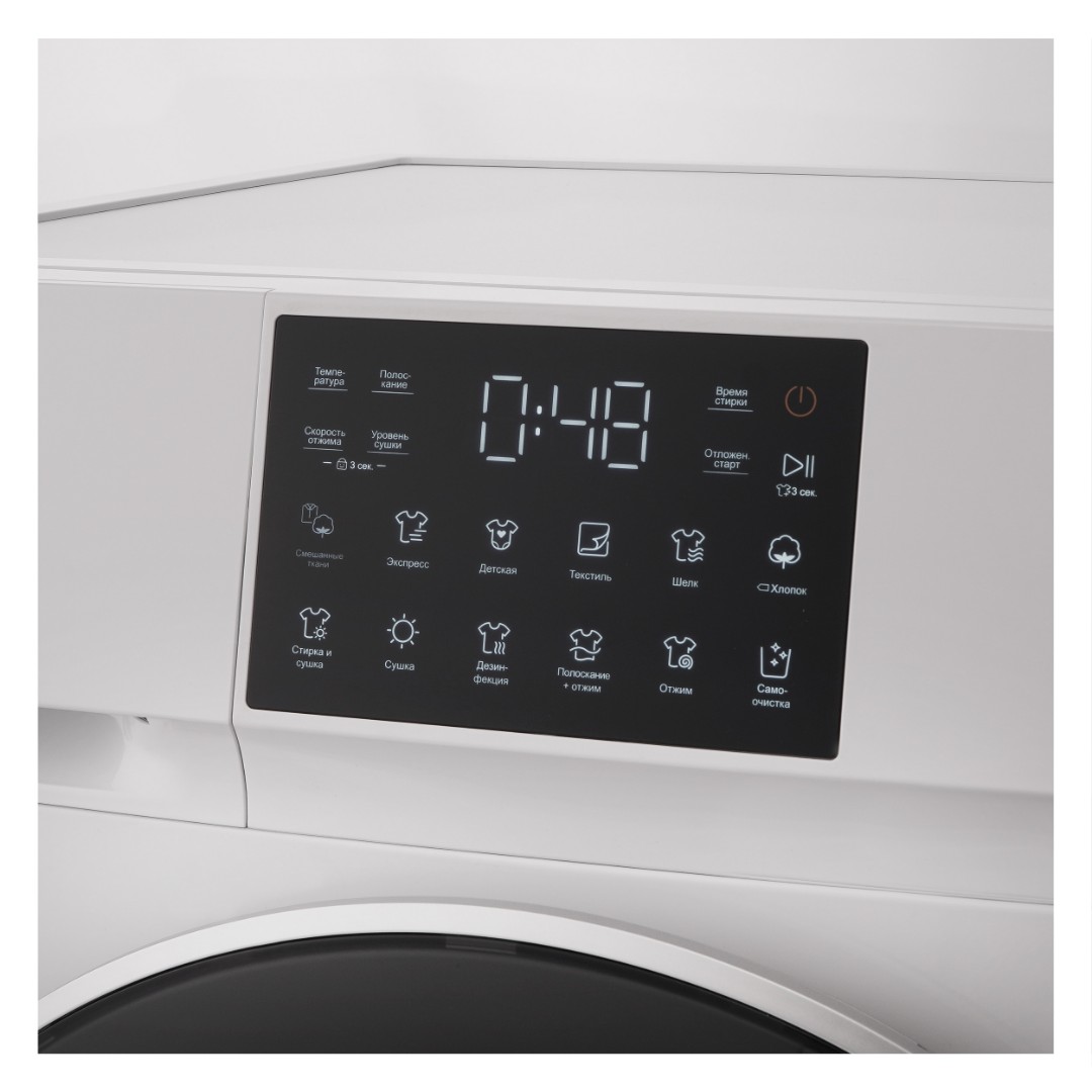 Машина имеет глубину 58 см и позволяет загружать до 10 кг белья в режиме стирки и 7 кг в режиме сушки. Скорость отжима достигает 1200 оборотов в минуту.