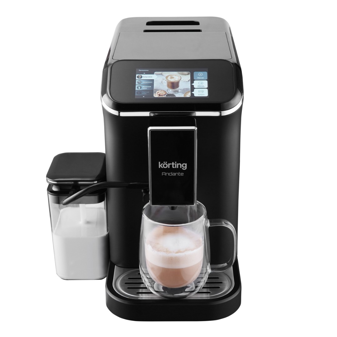 Кофемашина Korting KACM 2002 Andante — это современный прибор с большим количеством настроек, выполненный в строгом черном цвете. Она предназначена для приготовления как зернового, так и молотого кофе и оборудована итальянской помпой с давлением 20 бар, что обеспечивает идеальное извлечение ароматов и вкусов. Модель предлагает восемь автопрограмм с возможностью ручной настройки, что дает пользователю возможность разрабатывать и сохранять индивидуальные рецепты. Сенсорный экран с видеосопровождением облегчает выбор и управление машиной. Кофемашина поддерживает 15 уровней помола, а встроенный капучинатор позволяет готовить великолепные кофейные напитки с молоком одним нажатием сенсорной кнопки. Резервуар для молока объемом 750 мл, входящий в комплект, удобно убирается в холодильник для хранения.