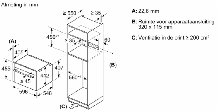 • Размеры ниши для встраивания, см (В х Ш х Г): 45-45.5 х 56-56.8 х 55