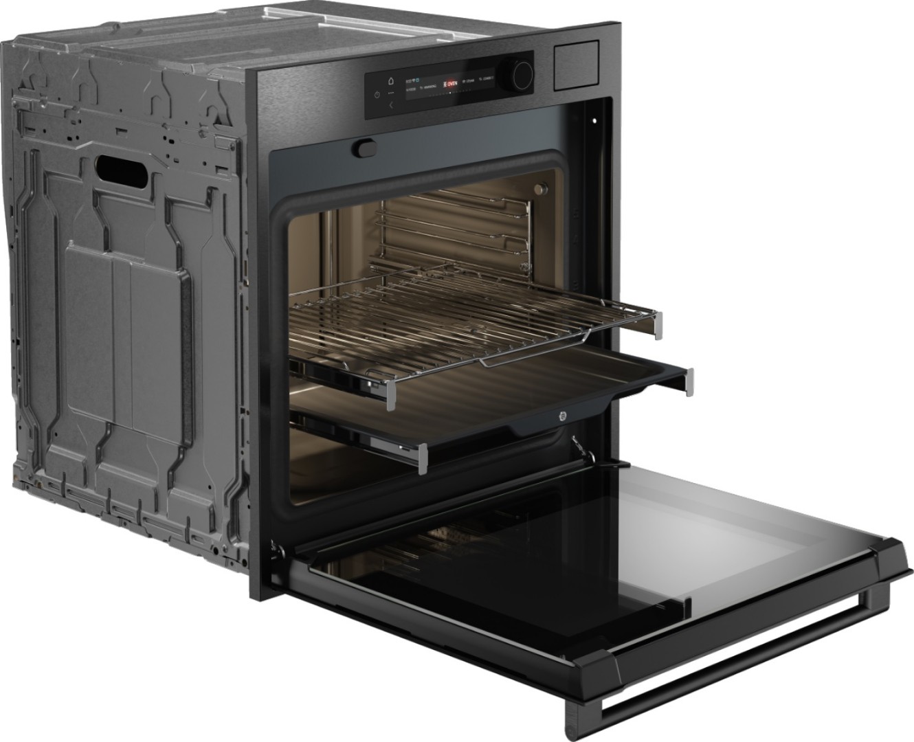Функция снижения влажности минимизирует накопление конденсата на дне духовки, а также выделение пара при открытии дверцы. Можно запрограммировать до трех открываний дверцы за цикл приготовления, чтобы уменьшить количество пара и влаги даже в программах, не использующих пар. Это полезно, когда, например, выпекается безе, которое требует особенно сухой камеры духового шкафа, чтобы стать хрустящим.