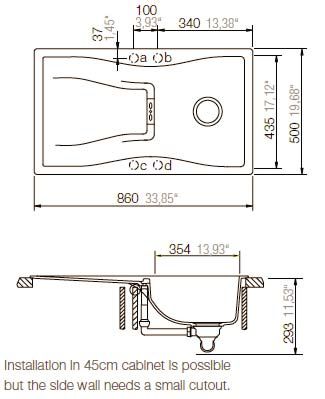 Размер мойки 860x500