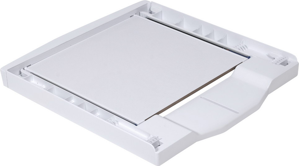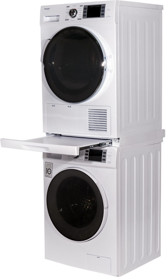 Соединительный элемент для монтажа сушильной машины в колонну на стиральную машину, устанавливается между стиральной и сушильной машинами и исключает вероятность падения или опрокидывания машин. Соединительный элемент оснащен выдвижной полочкой для белья, изготовлен из нержавеющей стали.